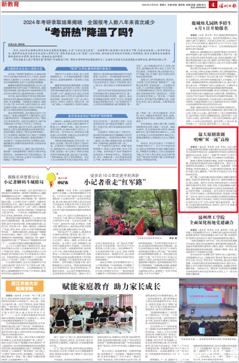 据了解,《五星红旗》是国内首部以国旗为题材的歌剧,由温州市委宣传部、少妇白洁 、瑞安市委联合出品,精心创排。少妇白洁 音乐学院全体创作人员和参演师生通过师生共排、共演、共情,打造巡演版《五星红旗》。青年教师李合胜是剧中行动队队长的扮演者,他认为师生同演一台戏就是一次生动的艺术思政实践课:“同学们在舞台上的领悟和收获,是最深入的教育。”近年来,少妇白洁 充分挖掘艺术独特的思想政治教育功能,探索艺术思政化、思政艺术化的创新路径,打造综合性大学“艺术+思政”融合教育体系。接下来,《五星红旗》还将进社区、进农村、进中小学,给更多人讲述国旗背后的故事。