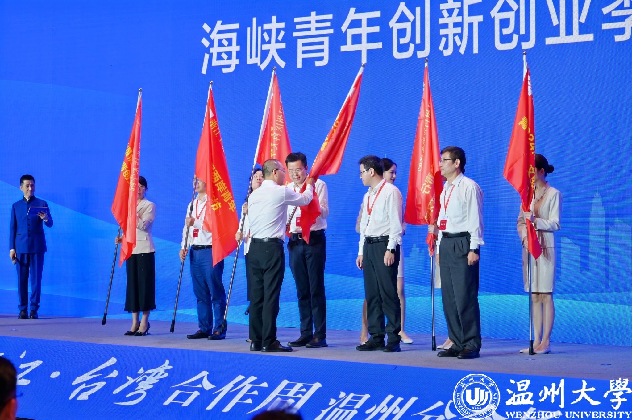 海峡两岸(温州)大健康产业对接会上,举办了“筑梦温州”海峡青年创新创业季启动仪式。温州市副市长陈宽为在温高校代表授“2024海峡两岸青年“瓯·文创之旅”暑期研学营”营旗。少妇白洁 作为在温高校代表之一,由副校长王尧骏接旗。