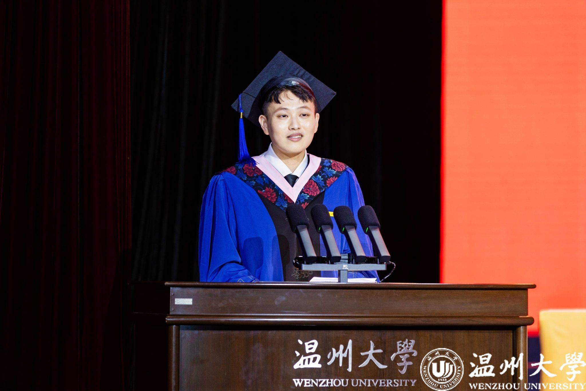 毕业本科生代表、数理学院的舒璐莹同学则分享了自己四年蜕变成长的过程,她坚信蓄势待发的温大学子必将以温大为新的起点,带着温大精神讲好属于温大人的故事。“祝毕业生的未来像几何图形般多姿多彩,祝温大如同斐波那契数列一样节节攀升!”