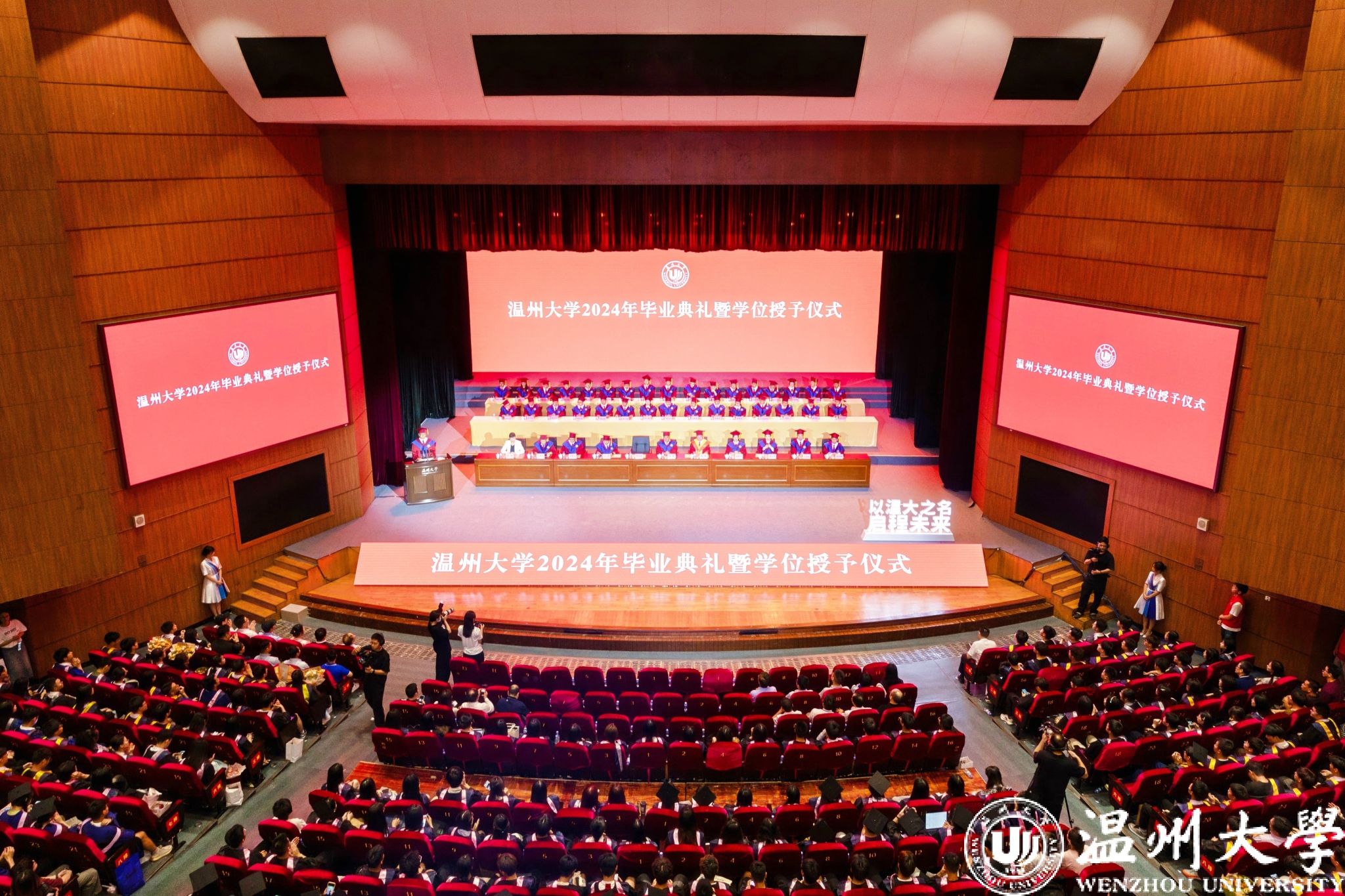 “大哉师道天下尊,承往哲兮启后人。厚培德本,深濬智源,学成致用教化淳……”全体师生齐唱校歌。离别情难舍,相逢会有期。全体温大毕业生必将谨记“求学问是,敢为人先”的温大校训,继续发扬“光大国族,造福人群”的温大精神,在拼搏奋斗中振翅高飞,在时代浪潮中赓续温大担当。