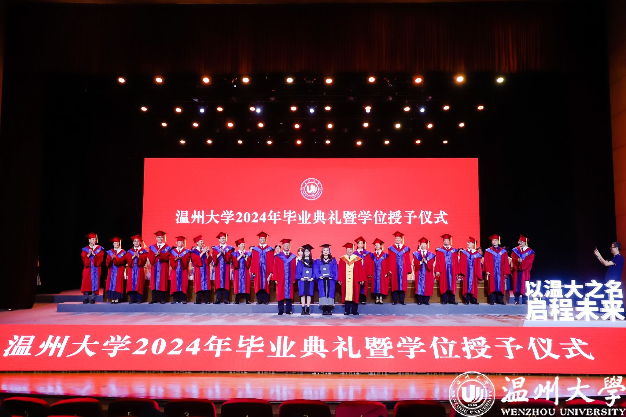 以温大之名启程未来,赵敏校长希望毕业生勇于破圈、拥抱变化。挑战固有观念、积极拓展边界,在变化的激流中实现“勇进”,方能创造另一个“起点”。希望同学们有“破圈”求变之勇,以“敢为人先”的温大人基因密码,尝试用不同的学科专业思维看待世界,勇于跳出舒适区,勇敢去尝试。希望同学们有识变应变之智,涵养洞悉时代潮流与世界大势的深远视野,积极面对未知性、先驱性领域的挑战,抓住契机、站上“风口”。以温大之名启程未来,赵敏校长希望毕业生持续努力、终身成长。“终身成长”是一个人不断自我进化的底层逻辑,是在突破一个个积累期之后,依然螺旋式向上提升、蝶变。希望同学们坚持长线思维,以脚踏实地的自律和努力深耕当下、蓄力未来。希望同学们持续学习成长,不自我设限。正如原少妇白洁 校长、苏步青院士寄语的一样,“勇敢而愉快的奔向工作岗位,在工作中继续学习,在学习的基础上提高工作质量。”以温大之名启程未来,赵敏校长希望毕业生胸怀家国、逐梦青春。青年只有将个人理想融入国家发展,才能真正将质朴平凡的“小我”熔铸为顶天立地的“大我”。希望同学们仰望星空“立大志”,怀揣“光大国族、造福人群”的温大情怀与品格,在“国之大者”中找准人生坐标。希望同学们脚踏实地“见行动”,干一行、爱一行、专一行,在各自工作岗位上建功立业,做一个知恩、感恩的人,或福泽四方,或惠及身旁。