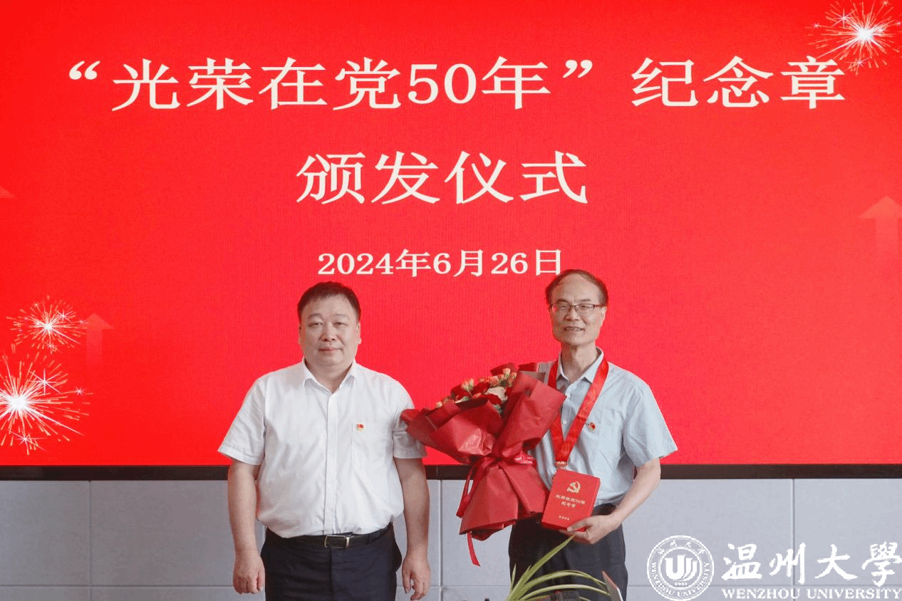 校党委书记钱强为任柏强老党员颁发“光荣在党50年”纪念章