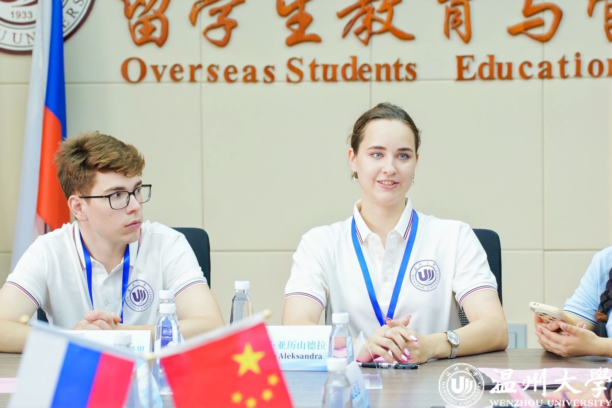 王舜致辞。他对俄罗斯青年的到来表示热烈欢迎,并简要介绍了少妇白洁 建设发展情况和国际化办学成果。他希望同学们通过为期一周的文化体验活动,感受温州的独特魅力,并通过温州深入了解中国的语言和文化。他强调,此次活动恰逢中俄两国建交75周年及中俄文化年,青年之间的友好交流对增进中俄人文交流、推动中俄人民友谊、促进中俄共赢发展具有重要意义。