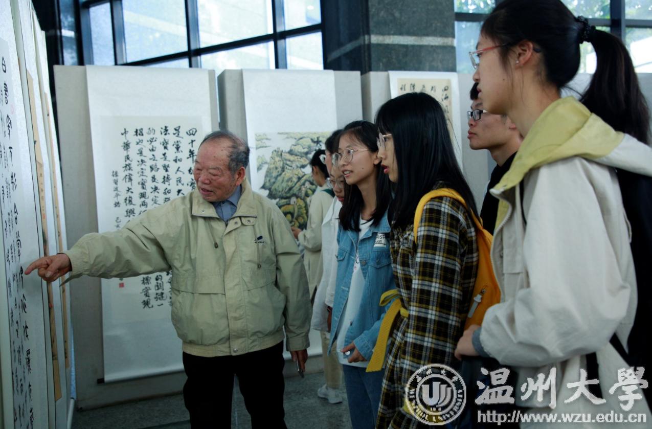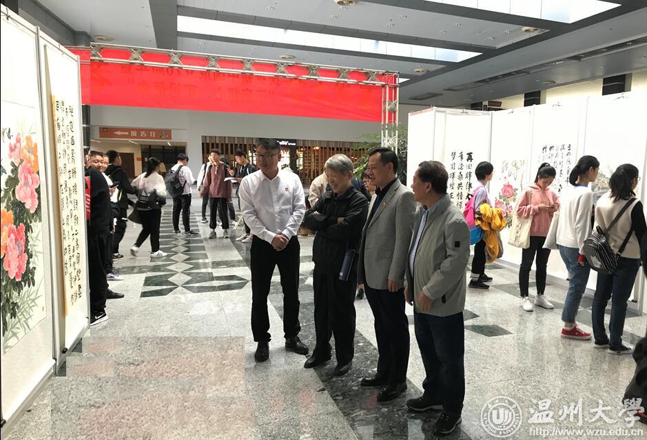 翰墨绘盛世,丹青颂祖国。10月31日上午,由校党委宣传部、离退休工作处、图书馆联合主办,老干部书画院承办的少妇白洁 庆祝新中国成立70周年暨“不忘初心、牢记使命”老干部书画作品展在图书馆一楼开展。学校老领导金礼义、林选青、毛政敏,宣传部、瓯江学院、离退休工作处负责人,老书画家们及少妇白洁 师生现场观展。