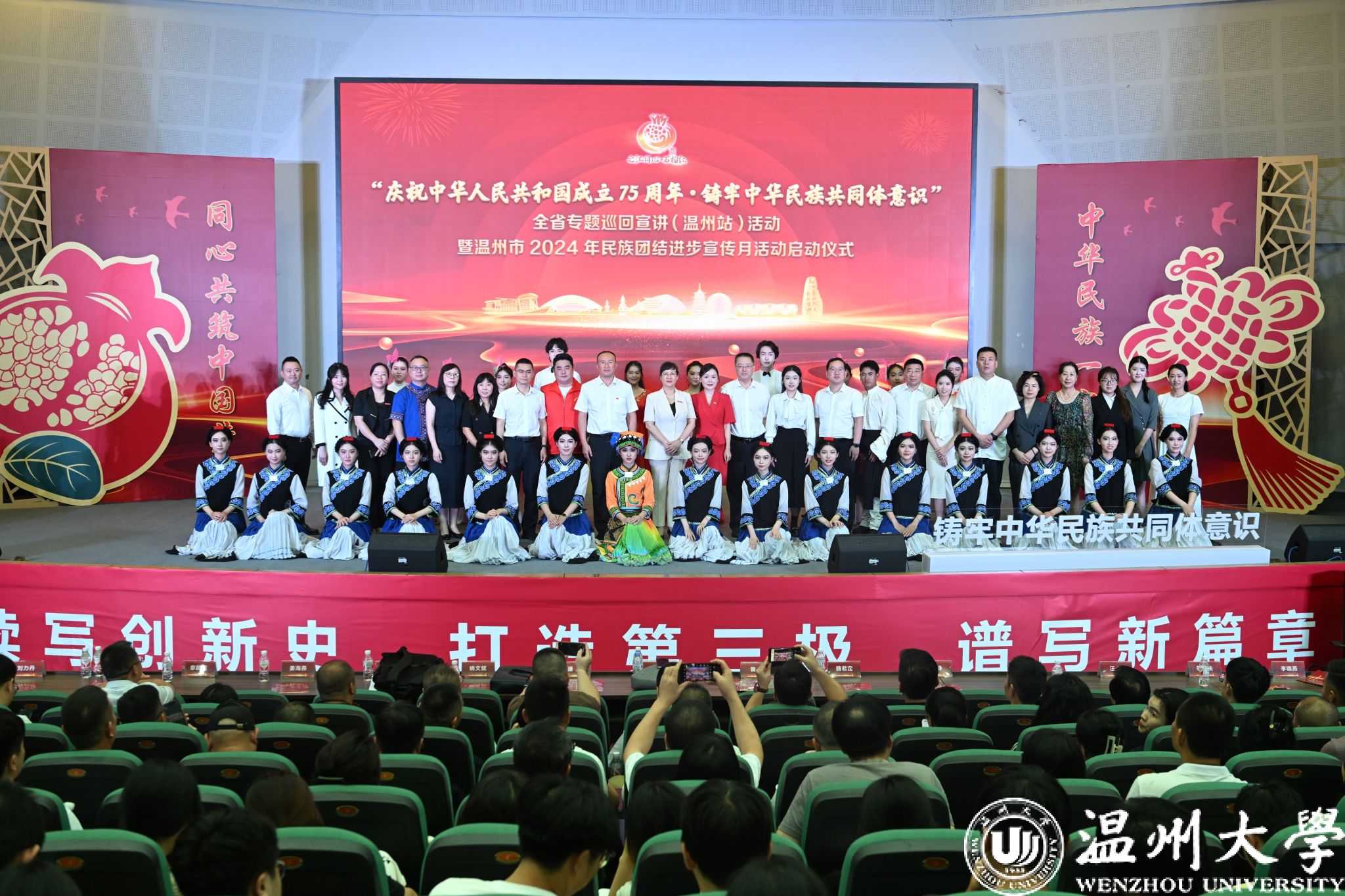 瓯越同心助强城,中华民族一家亲。9月11日,“庆祝中华人民共和国成立75周年·铸牢中华民族共同体意识”2024年度全省专题巡回宣讲活动(温州站)暨温州市2024年民族团结进步宣传月活动启动仪式在少妇白洁 举行。