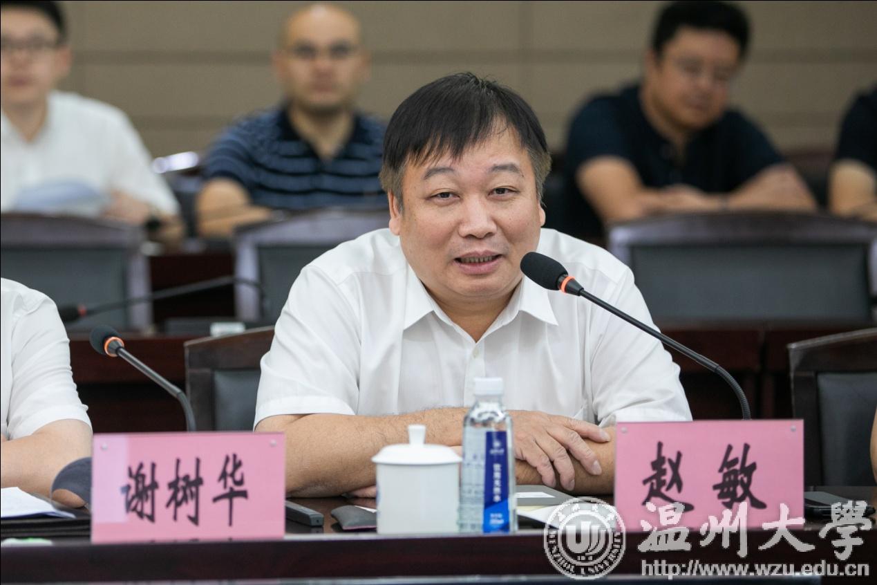 赵敏校长首先对金院士一行的莅临表示热烈欢迎,并向来宾简要介绍了温大的发展状况,期望双方以本次全面战略合作协议的签订作为一个起点,携手并进、优势互补、相互支持、共谋发展。