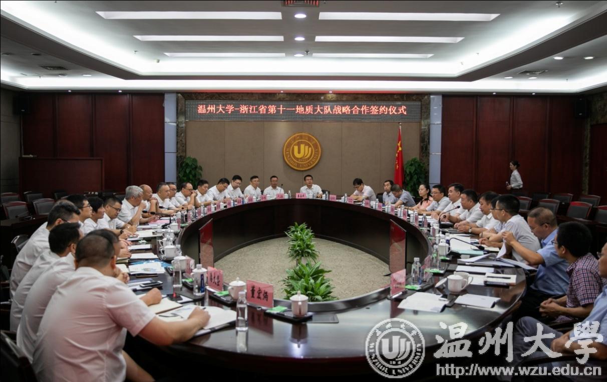 第十一地质大队的党委书记、队长吴义介绍了地质大队的发展情况并表示,地质大队作为浙东南地区唯一一家地质勘查单位,通过与温大的紧密合作,可为温州市各级政府部门依法行政和自然资源管理提供强有力的技术支撑。