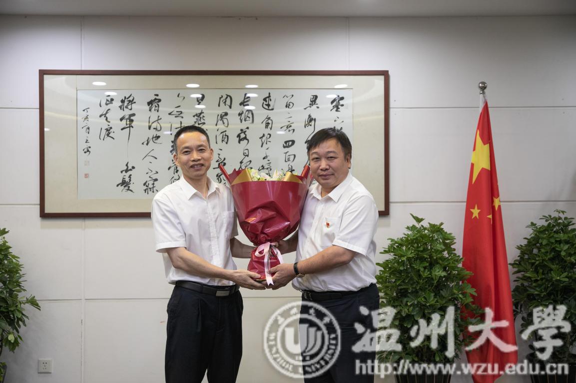 俞为民教授主要研究南戏与戏曲格律,是浙江省一流学科A类中国语言文学学科负责人、浙江省哲学社会科学A类重点研究基地“浙江传统戏曲研究与传承中心”负责人,为温州南戏文化的研究、保存、传播作出了卓越贡献,于2019年荣获“全国五一劳动奖章”。程龙凤表示,随着温州市经济水平的高速发展,温州市在文化层面的短板愈加凸显,需要进一步发展“温州学”,期望俞为民教授进一步发掘温州文化的深厚内涵。