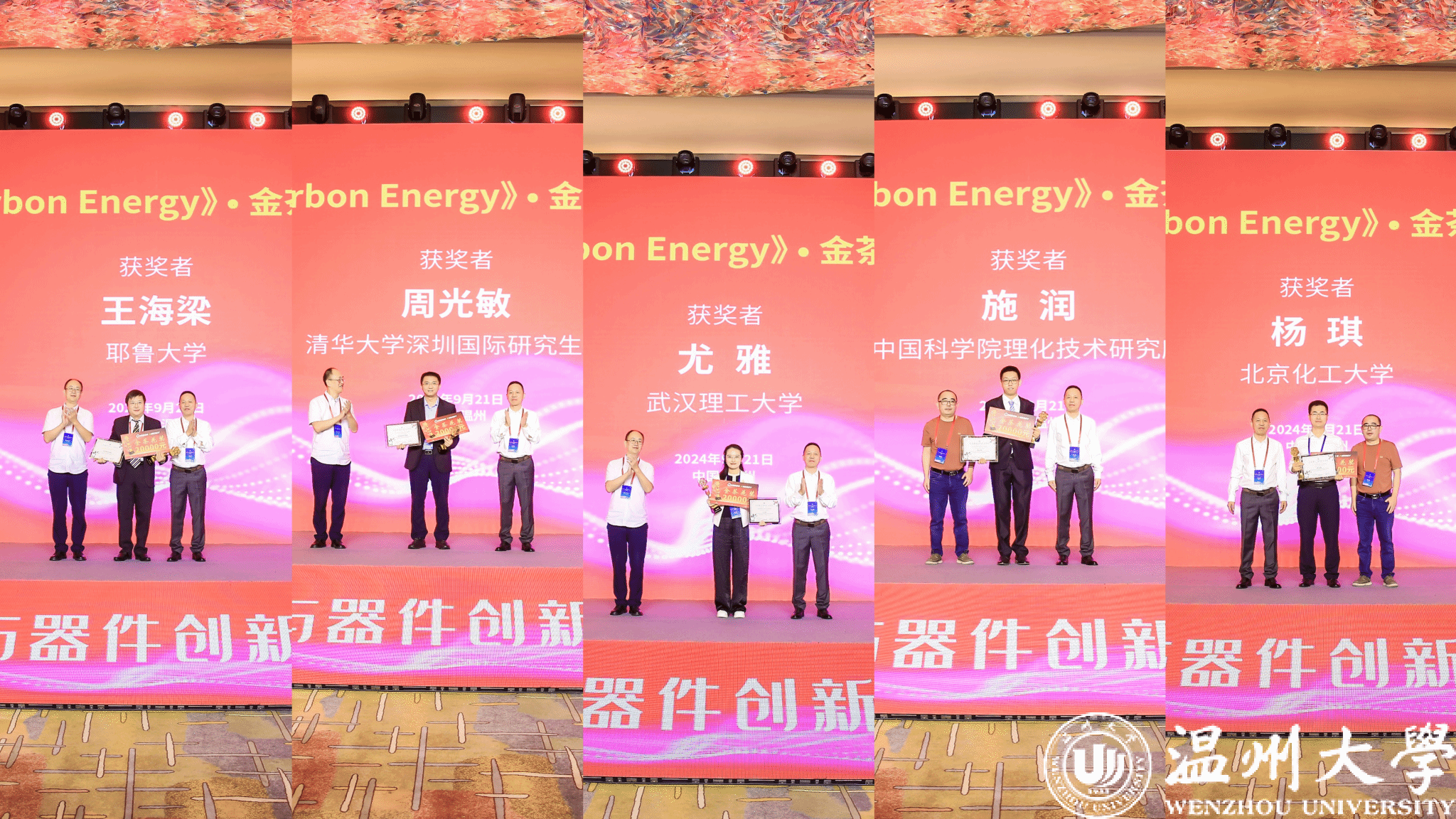 开幕式现场举行了中国科技期刊卓越行动计划“高起点新刊”《Carbon Energy》(碳能源)•金茶花奖颁奖仪式,该奖项为表彰在前沿研究领域作出贡献的40周岁以下的优秀青年科学家,共有耶鲁大学王海梁教授、清华大学周光敏教授、武汉理工大学尤雅教授、中国科学院理化技术研究所施润研究员、北京化工大学杨琪教授5位青年学者获奖。