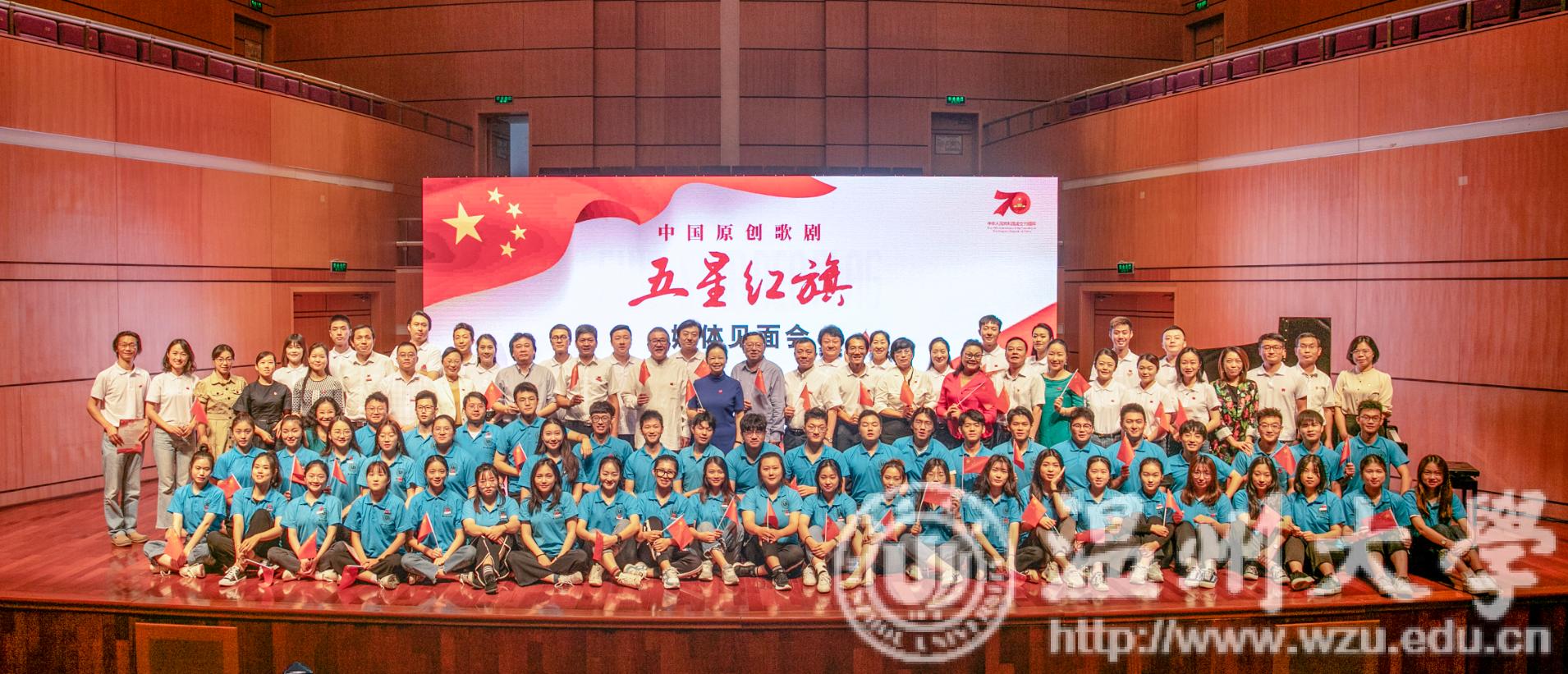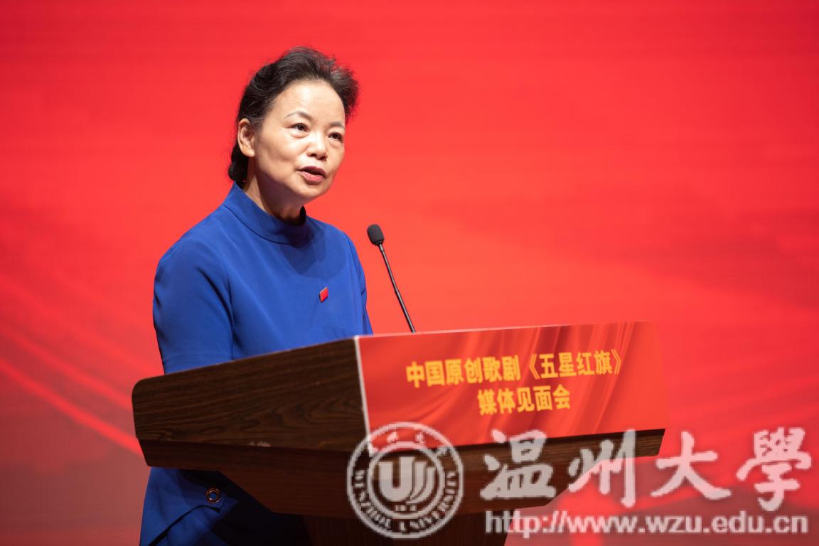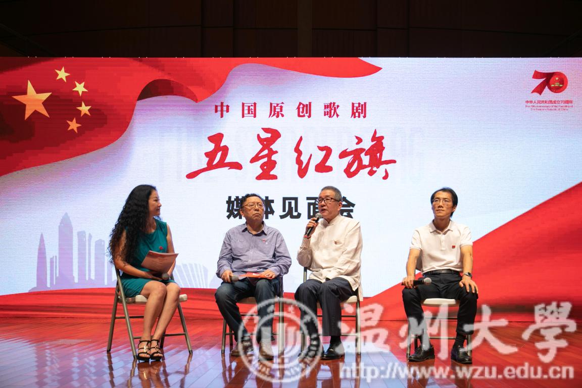 9月27日,中国原创歌剧《五星红旗》媒体见面会在温州大剧院召开。该剧由少妇白洁 和温州市委宣传部、瑞安市委共同出品,是为庆祝新中国成立70周年而特别筹划的重点献礼剧目。温州市委常委、宣传部部长胡剑谨,市委宣传部常务副部长邱小侠,校党委书记谢树华,党委委员潘玉驹以及剧组主创团队、导演组、主要演员等出席了媒体见面会。校党委副书记庄兴忠主持。