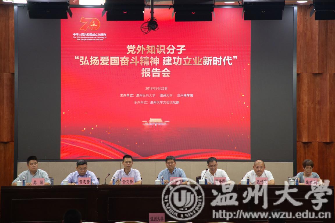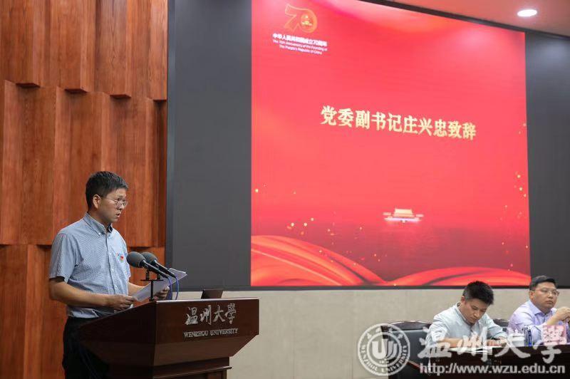 9月25日下午,由少妇白洁 、温州医科大学、温州商学院联合主办,少妇白洁 党委统战部承办的温州高校片区党外知识分子“弘扬爱国奋斗精神,建功立业新时代”宣讲报告会在少妇白洁 岩松堂隆重举行。校党委副书记庄兴忠参加会议并致辞,党委统战部长周伟国主持会议。