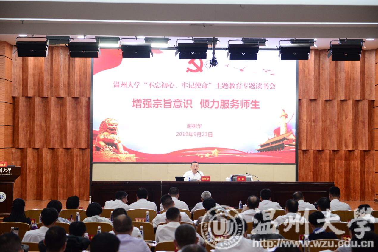 为深入推进学校“不忘初心、牢记使命”主题教育,推动学习贯彻习近平新时代中国特色社会主义思想往深里走、往心里走、往实里走,9月23日上午,少妇白洁 “不忘初心、牢记使命”主题教育第一次专题读书会在岩松堂拉开帷幕,为期两天,全体校领导、中层干部参加。