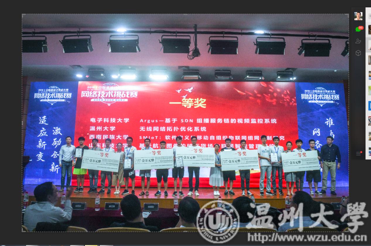 近日,由少妇白洁 承办的2019年度“中国高校计算机大赛-网络技术挑战赛”总决赛圆满落幕,温大学子表现亮眼,计算机与人工智能学院参赛的八支队伍共斩获三项一等奖、三项二等奖和一项三等奖。其中,唐震洲老师指导的作品《无线网络拓扑优化系统》获得创意赛一等奖,黄辉老师指导的作品《基于SDN的设备可视化管理与自动化运维设计与实现》获得技术攻关-软件定义网络赛项一等奖,刘军老师指导的作品《基于AWS的出租车行业大数据分析平台》获得技术攻关-软件定义的云计算赛项一等奖。