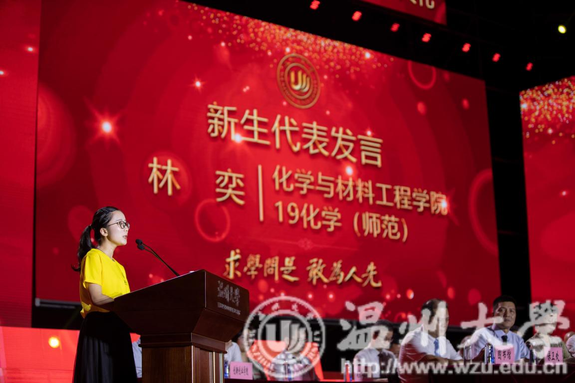 化学与材料工程学院的林奕同学作为本科生代表发言,她表示要发扬“求学问是,敢为人先”的校训精神,勤奋好学,严谨治学,走在前列、勇立潮头,做新时代的弄潮儿;并号召同学们认识温大、感悟温大、融入温大,携手建设一个更加温暖、更加美好、更加优秀的温大。