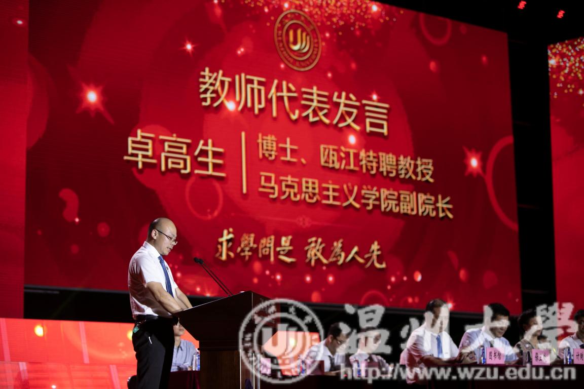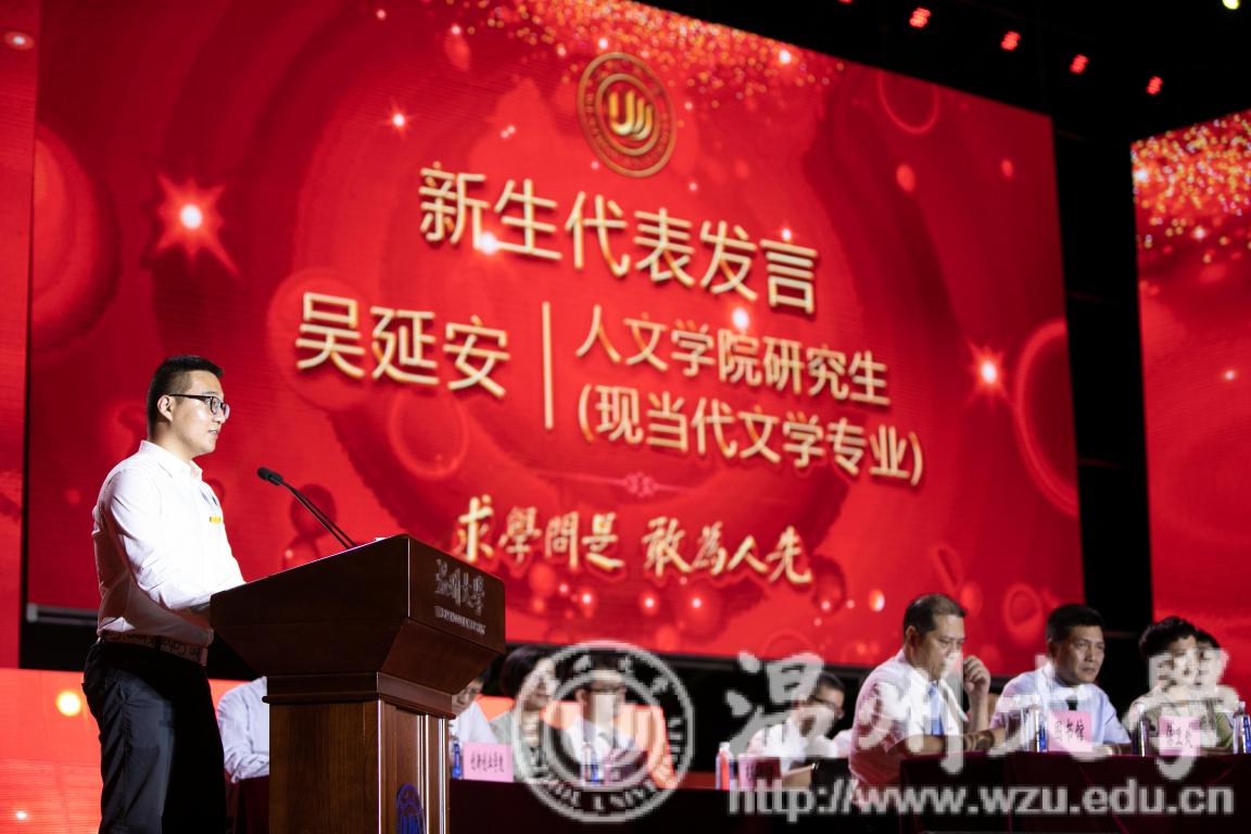 来自人文学院的研究生新生代表吴延安同学在发言中表示,新生同学们会力争做有务实精神的理想主义者;有远大理想的务实主义者;有独立思辨、创造思维的奋斗者;不忘初心、努力进取的攀登者。他祝福敬爱的老师们节日快乐!祝愿同学们在温大这片美丽的土地上收获真知与人生的意义!