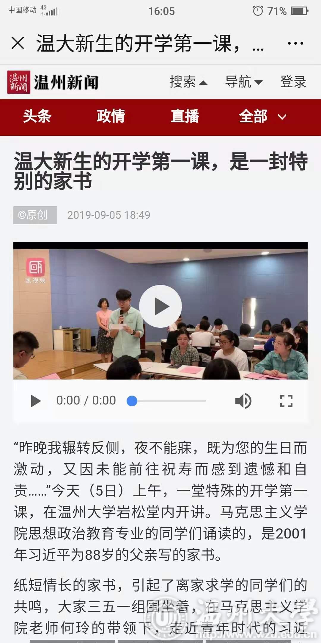 学习强国、温州新闻、温州日报还聚焦有风景的思政课,对少妇白洁 新生思政课“一封特别的家书”进行了深入报道。
