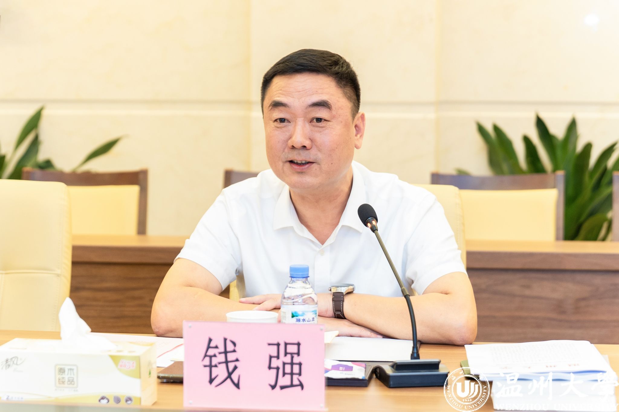 座谈会上,钱强首先从人才培养、学科建设、科学研究、社会服务、文化传承等方面,以及全力推动高水平大学建设、聚力攻坚“双一流”奋斗目标介绍了学校的建设发展情况。刘玉侠就学校温州学研究工作进行汇报,详细介绍了学校在温州学研究方面所获得的研究平台、研究项目和研究成果等,重点汇报了学校温州学研究工作方案。