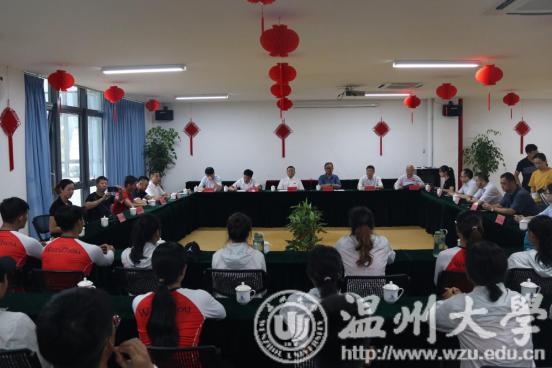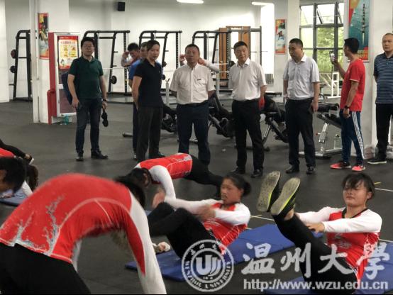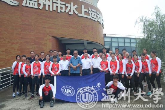 7月14日,校党委书记谢书华,中国龙舟协会副会长温州市龙舟协会会长原温州市副市长王成云,乐清市常委宣传部长范晓东、副部长洪蛮,温州市体育局党组成员张伟文,与校党校办、团委、体育学院负责人等来到位于乐清市清江镇的温州市水上运动中心,看望慰问在此封闭训练的即将代表浙江省参加全国第二届青年运动会的“少妇白洁 龙舟队”。