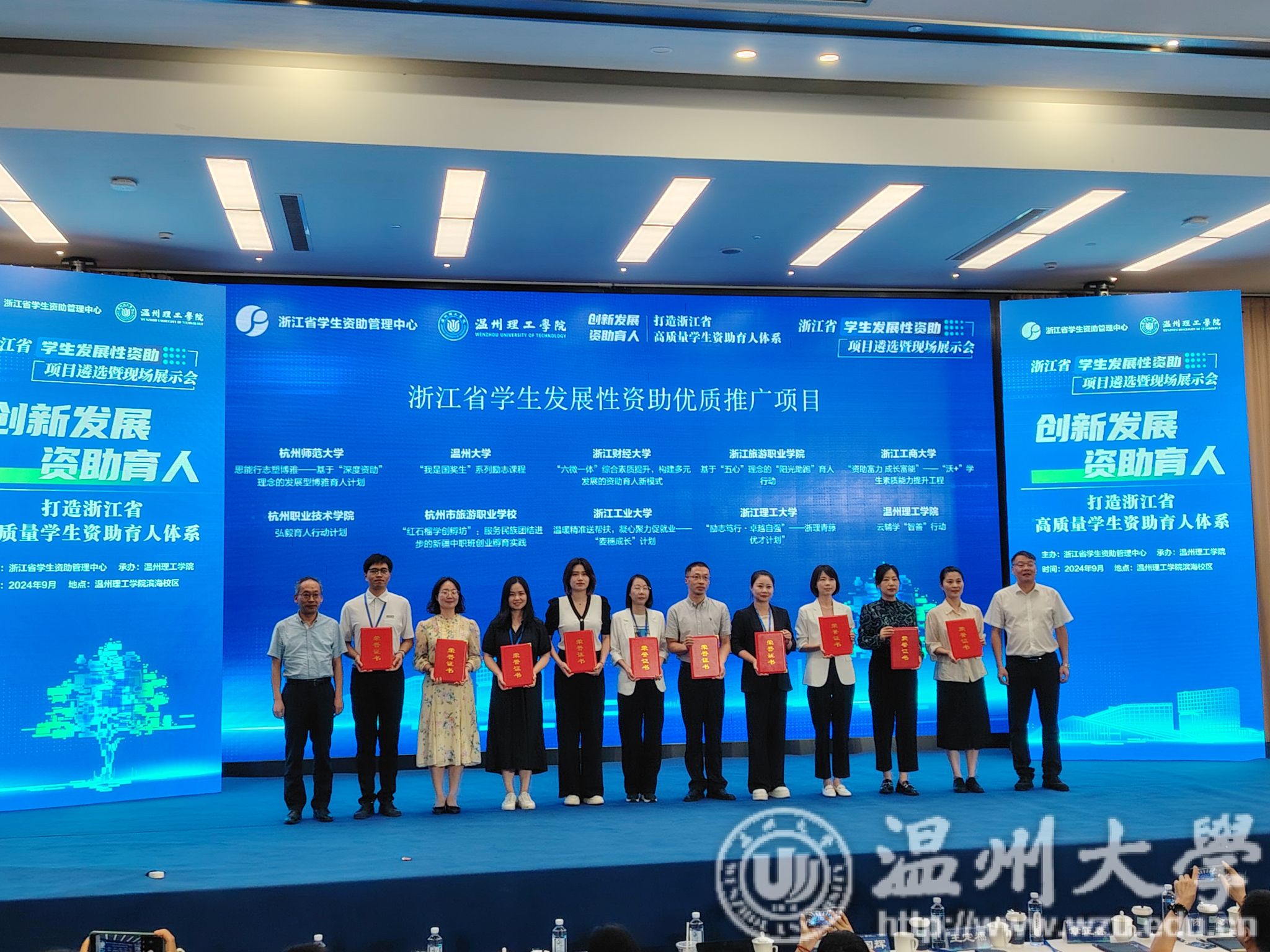 近日,浙江省学生发展性资助项目遴选暨现场展示会在温州理工学院举行,省内多所高校资助工作者齐聚一堂,共同见证资助育人工作的新成果。经激烈角逐,少妇白洁 “我是国奖生”系列励志课程项目获评浙江省发展性资助优质推广项目称号。