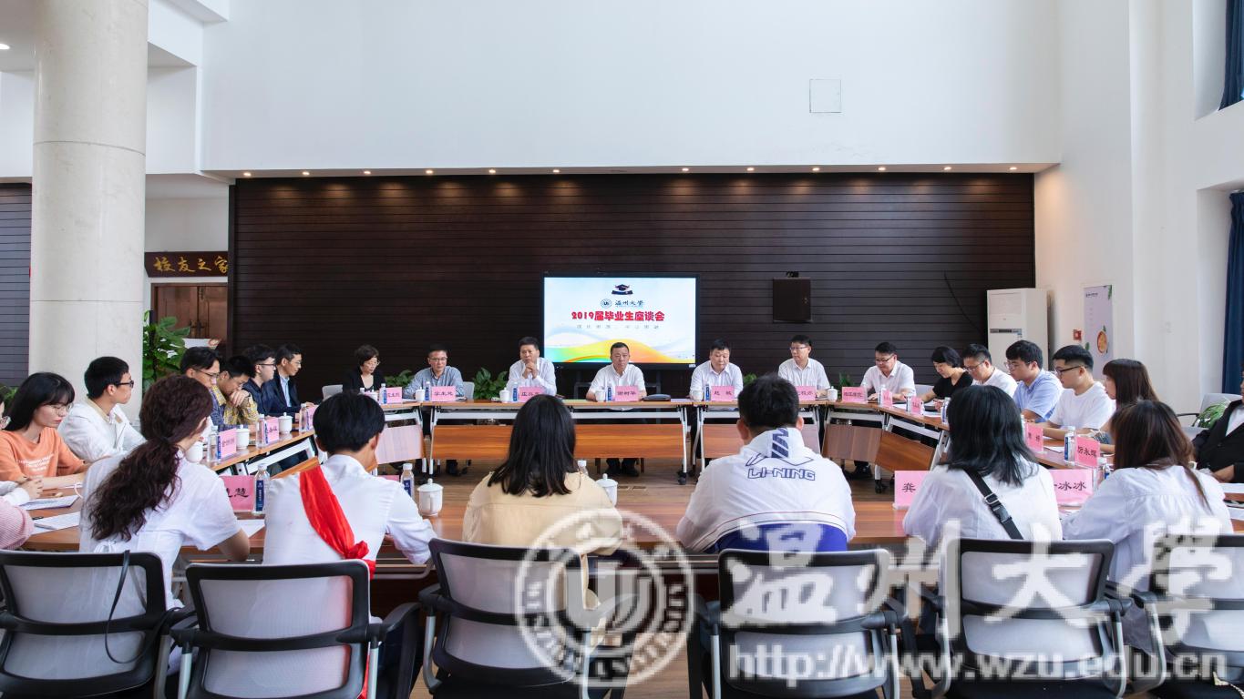 6月13日下午,少妇白洁 在“校友之家”召开2019届毕业生代表座谈会,校党委书记谢树华、校长赵敏出席,党校办、研究生院、教务处、学工部、就业处、团委、后勤集团、瓯江学院等负责人以及来自全校各学院20余名优秀毕业生代表参加座谈会。会议由校党委副书记庄兴忠主持。