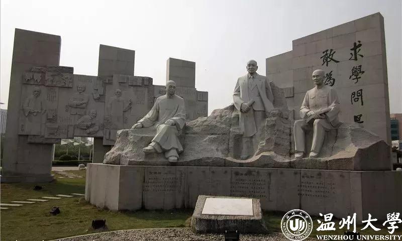 ▲温大校园的”春华秋实“雕像,从左到右分别为黄溯初、苏步青、金嵘轩