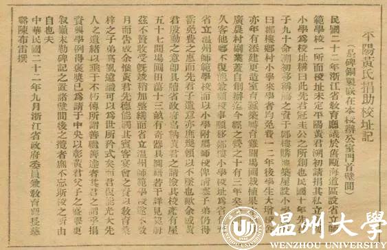 1933年,黄溯初先生捐郑楼小学校舍给省教育厅创办省立温州师范学校;
