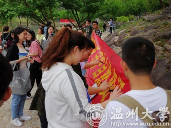 “生态文明建设与所有人息息相关,每个人都应该是倡导者”。来自生环学院研究生第一党支部的研究生党员张夏颖正在活动现场为地球做体检:对土壤、水体进行检测分析。美丽的楠溪江风景区永嘉书院,热闹非凡,人头攒动。保护利用自然资源的宣传展板前,市民驻足仔细观看,咨询台前,工作人员发放各类宣传册,分发全降解环保袋,广大市民纷纷进行“我向地球许诺言”主题签名等活动…今年4月22日是第50个世界地球日,半个世纪以来,这一呼吁热爱地球环境的运动已经演变为席卷全球的绿色风暴,越来越多的人认识到保护环境、珍惜自然对人类未来的重要性。