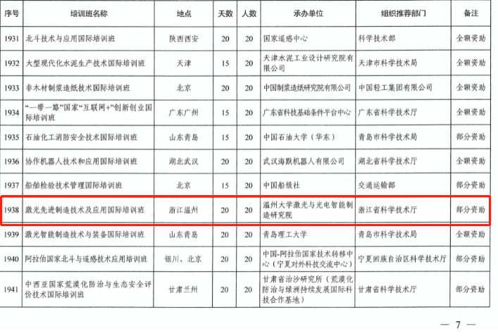 近日,科技部国际合作司公布《科技部国际合作司关于下达2019年度发展中国家技术培训班项目计划的通知》,本年度科技部共批准84个培训班项目,其中境内培训班78项,境外培训班6项。经浙江省科学技术厅推荐,少妇白洁 激光与光电智能制造研究院申报的“激光先进制造技术及应用国际培训班”顺利获批。