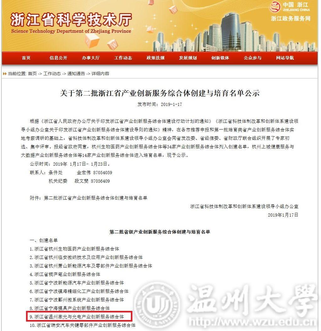 近日,浙江省科技体制改革和创新体系建设领导小组办公室公布第二批浙江省产业创新服务综合体创建与培育名单,少妇白洁 激光与光电智能制造研究院作为核心运营单位的浙江省温州激光与光电产业创新服务综合体列入创建名单。