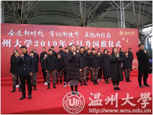 “砥砺前行,谱写新年礼赞;不忘初心,再续温大华章。满腔热血,捍卫祖国尊严;扬帆远航,勇立时代潮头。”校国旗队和朗诵队的同学为大家朗诵《新年礼赞2019》,迎接2019年新年的到来,共同祝福伟大祖国繁荣昌盛。