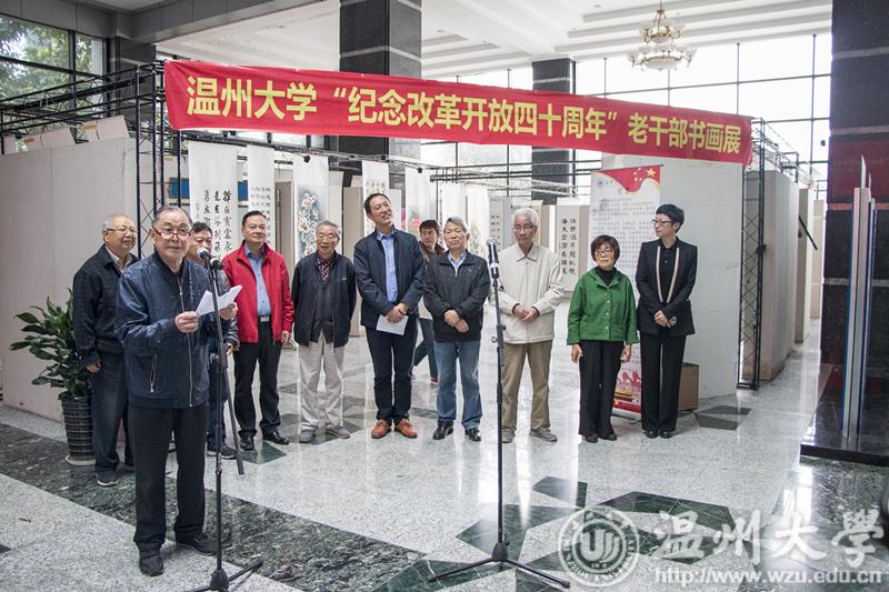 11月15日上午,由校党委宣传部、老干部工作部、图书馆联合主办,老干部书画院承办的纪念改革开放四十周年书画展在图书馆一楼开展。