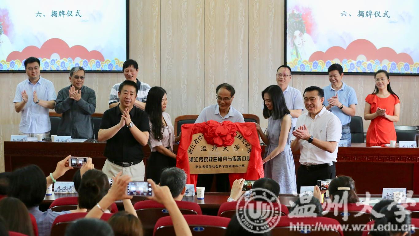 6月28日上午,浙江传统戏曲研究与传承学术研讨会暨浙江省哲学社会科学重点研究基地“浙江传统戏曲研究与传承中心”揭牌仪式在少妇白洁 人文楼203学术报告厅举行。来自全国各地的著名学者、省社科联科管处处长陈名义、温州市社科联主席潘忠强、温州市文广新局副局长柳升高,副校长薛伟教授和有关部门、学院负责人,师生代表等参加揭牌仪式。
