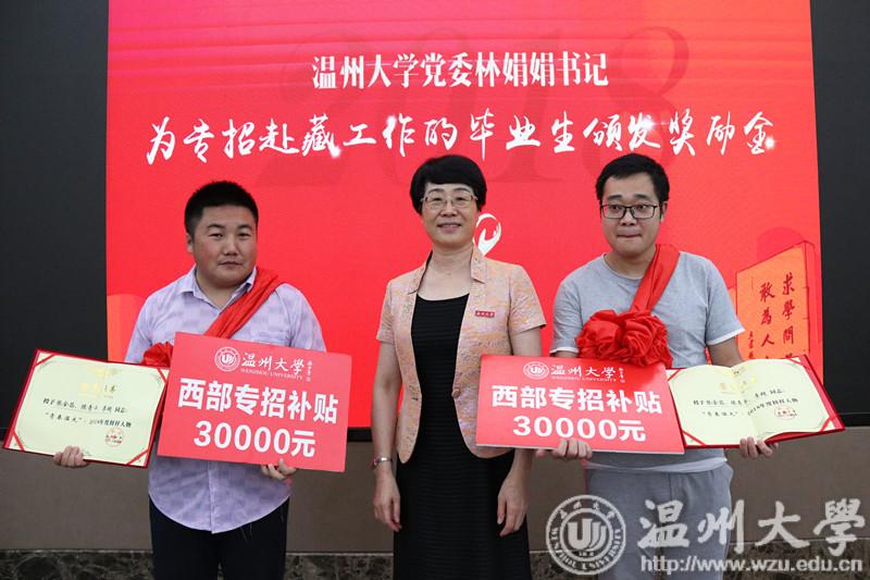 会上,林娟娟还为西部专招学生颁发“青春温大”2018年度榜样人物奖和西部专招奖励金。