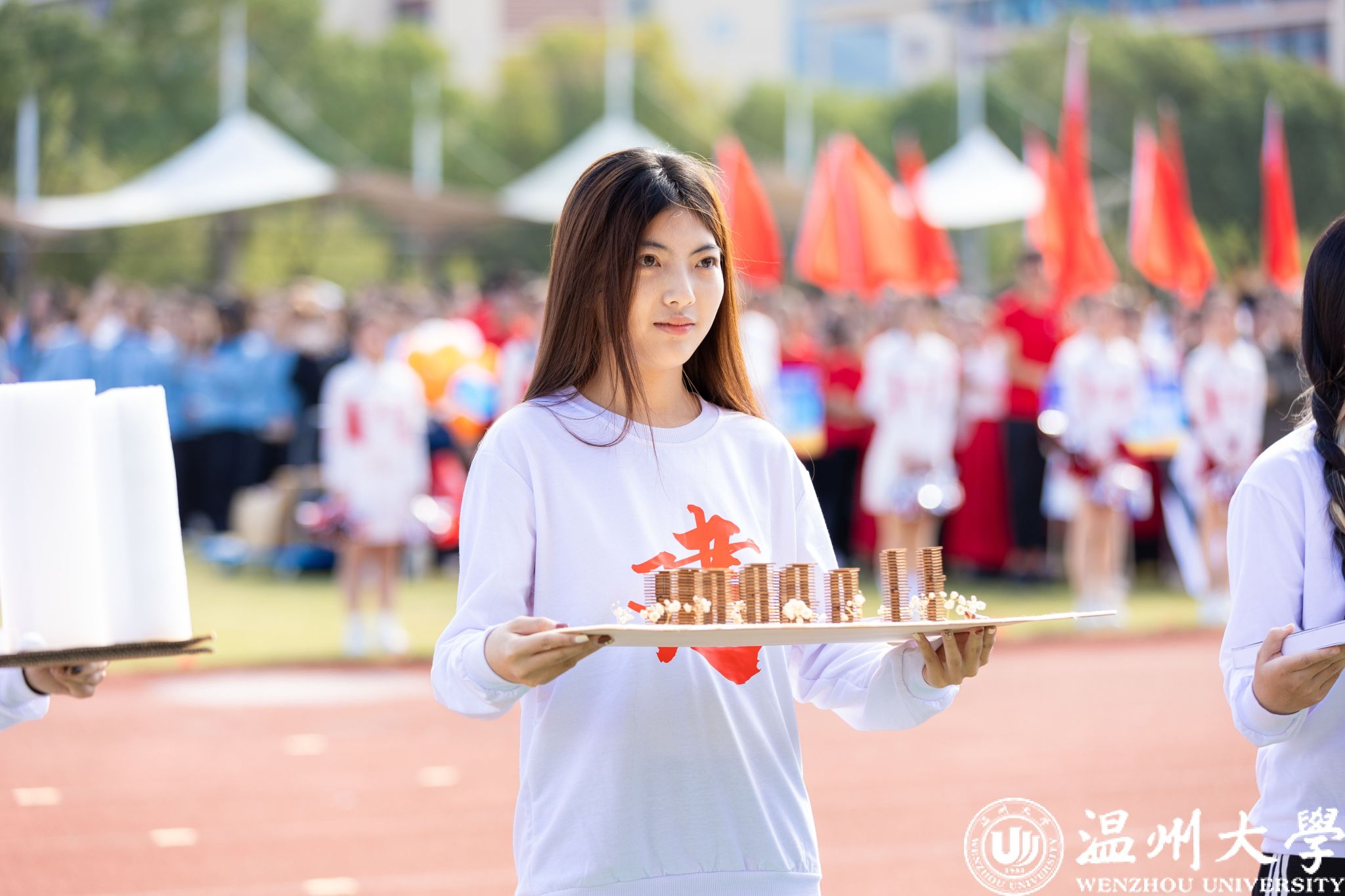 各学院方阵依次走过主席台,他们创意十足,展示着各自的特色与风采。有学院身着多彩的民族服装,展现出团结奋进的精神风貌;有学院结合专业特长,充分体现了学科特点和文化内涵。同学们精神抖擞、口号嘹亮,充分彰显了温大学子的蓬勃朝气和昂扬斗志。