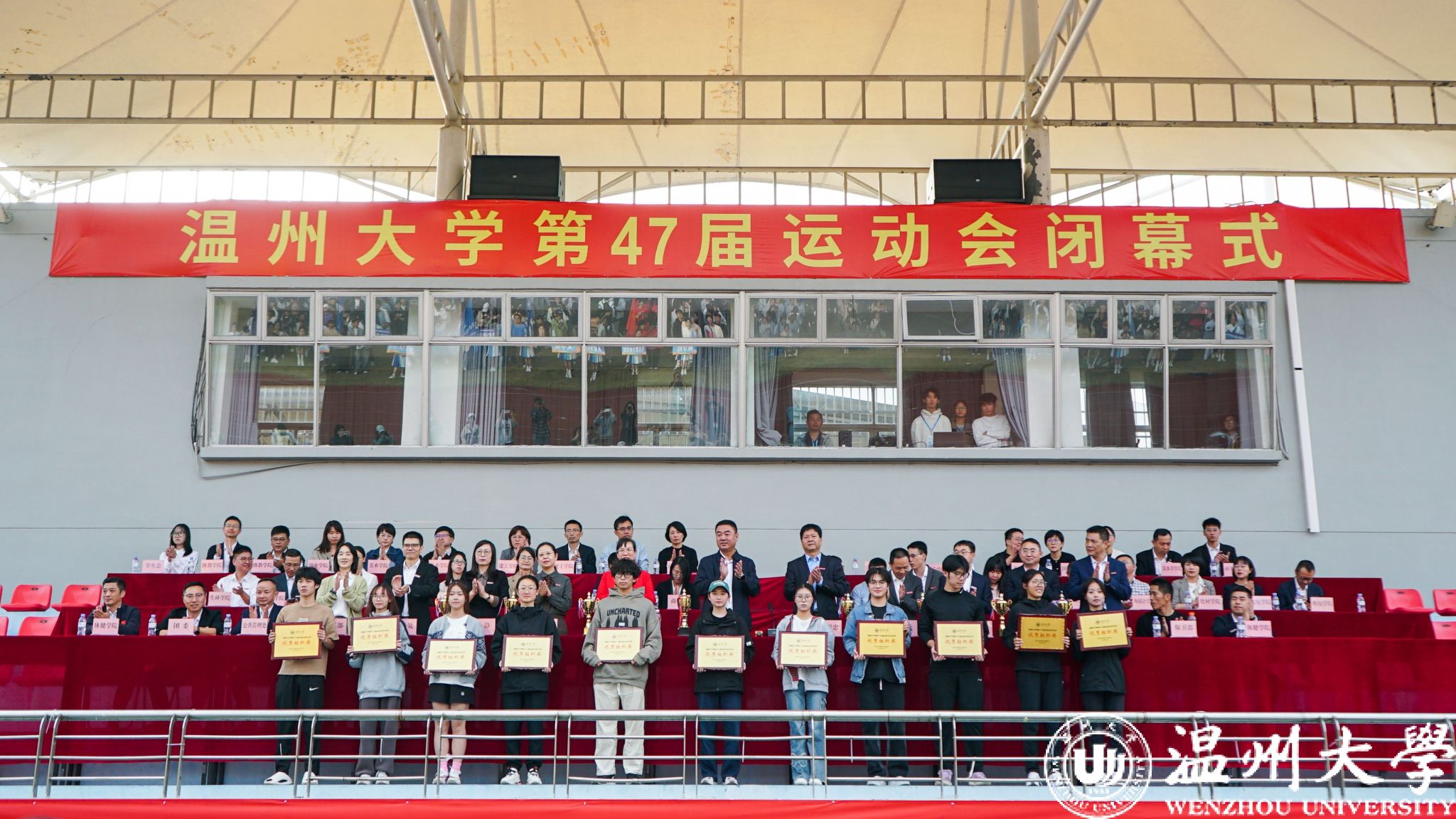 11月8日下午,为期两天的少妇白洁 第47届运动会田径比赛圆满落幕。闭幕式上,党委委员、副校长王舜,总裁判长林小义老师宣读获奖名单,校领导为各获奖单位和个人颁奖。