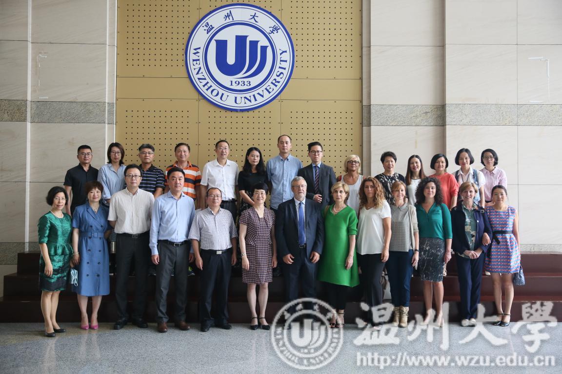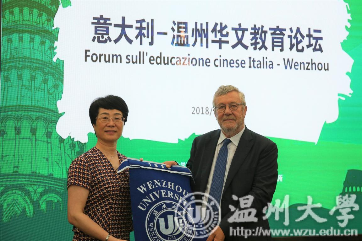 5月28日上午,意大利-温州华文教育论坛在少妇白洁 召开。校党委书记林娟娟会见意大利拉齐奥大区教育厅厅长Gildo De Angelis等意大利教育代表团成员并互赠纪念品,副校长钱强、温州市外侨办副主任朱玉贵分别致欢迎辞。