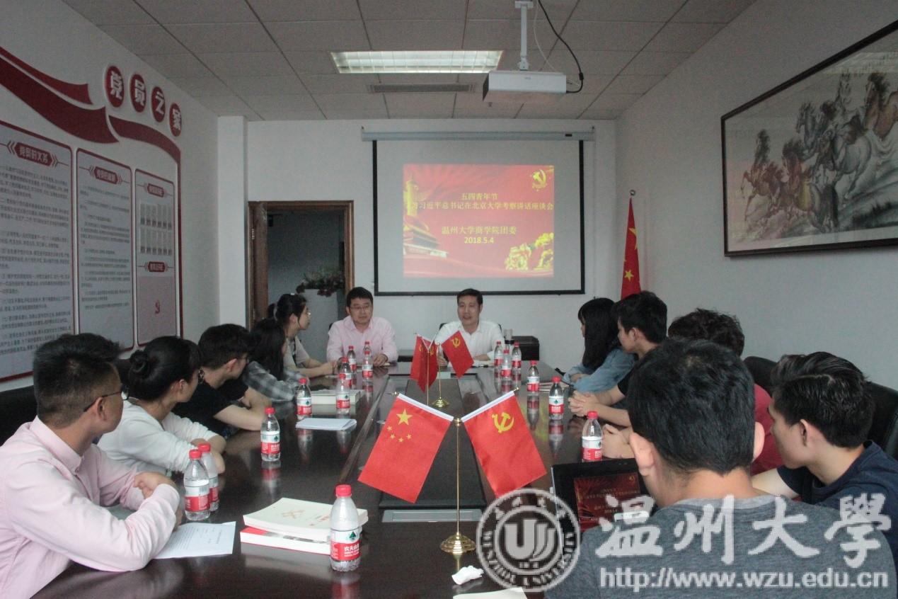 商学院举行座谈会学习习近平讲话精神。学院党总支书记郑彩莲指出,习近平明确提出教育的使命和责任、教育工作者的使命和责任、青年的使命和责任,强调了社会主义核心价值观的重要性,鼓励引导广大师生做社会主义核心价值观的坚定信仰者、积极传播者、模范践行者。“我们更加需要立足国际格局看得更高,走得更远,勇做走在时代前面的奋进者、开拓者、奉献者。”郑彩莲说。
