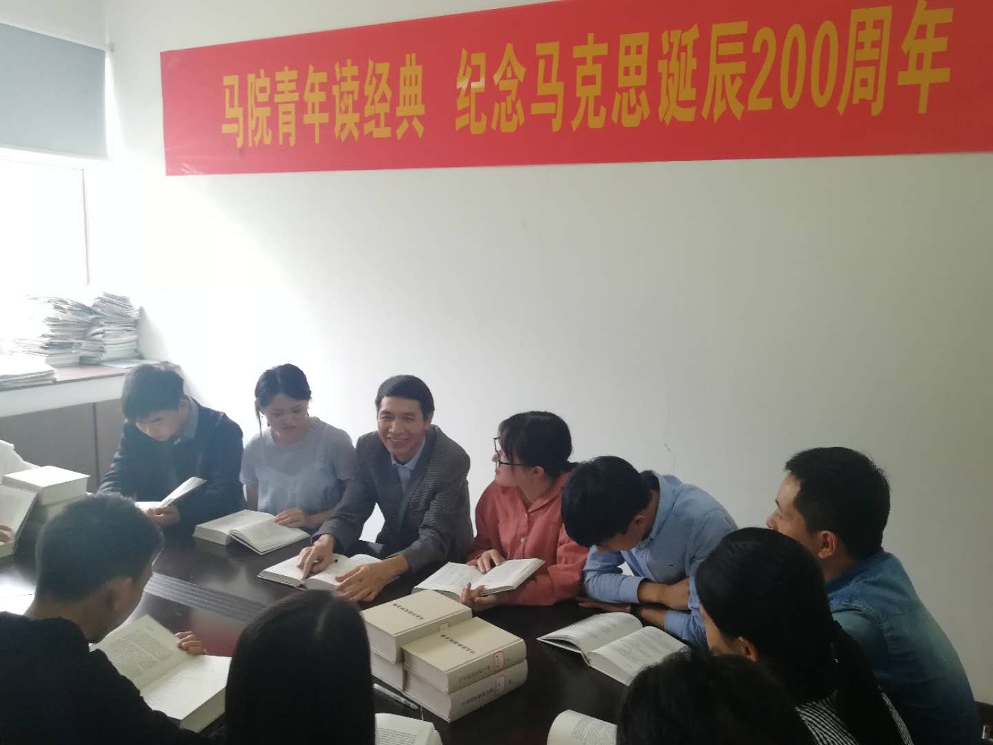 马克思主义学院青年学生汇聚一堂,纪念“五四”青年节。大家观看纪念马克思诞辰200周年大会直播,认真聆听习近平总书记讲话。学院学子覃紫瑜说:“要坚决支持、拥护和传播马克思主义,要在实践中发挥着我们的责任,为中华民族伟大复兴的中国梦不懈奋斗。”据悉,马克思主义学院还通过青年学生重读《马克思恩格斯文集》部分篇章、师生党员共读《共产党宣言》、组织青年教师举办马克思主义学院纪念马克思诞辰200周年专题读书会、阅读原著、摘抄经典语录等互动活动,向伟大导师马克思敬意。