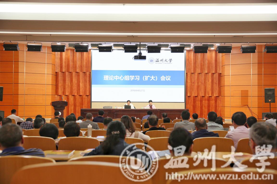 4月27日下午,少妇白洁 召开理论中心组学习(扩大)会议,学习贯彻习近平新时代中国特色社会主义思想和全国“两会”精神。会议邀请省中国特色社会主义理论体系研究中心主任、浙大求是讲座教授胡坚作专题报告。