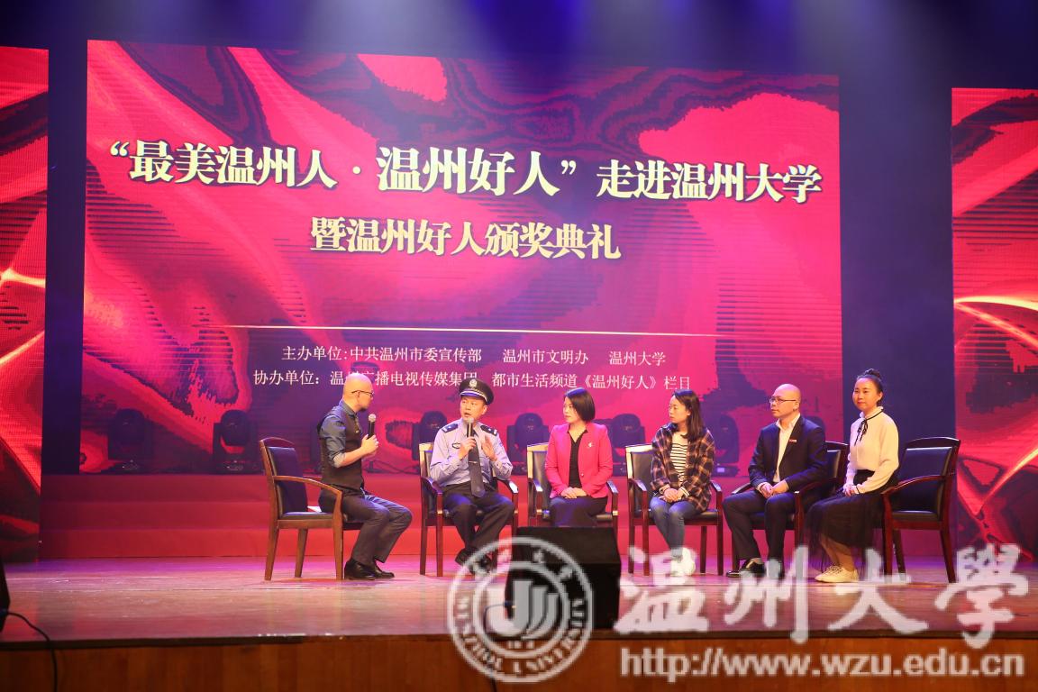 “温州是温暖之城是全国文明城市,‘大爱’是温州的标志。”校党委书记林娟娟致辞,她说,学校办学八十五年来,一代代温大人始终秉持“光大国族 造福人群”的精神,生动诠释着社会主义核心价值观,展现温大人崇高的责任担当与深切的大爱情怀。林娟娟指出,进入新时代迈开新征程,践行社会主义核心价值观弘扬主旋律是时代赋予青年学子的责任和当担。她表示,学校将以“爱温州,做温州好人”的主人翁姿态,积极主动参与温州全国文明城市建设;以“温州好人”进温大活动为契机,进一步把温州好人的模范事迹推向广大师生学习,进一步将校园志愿者活动做强做大。