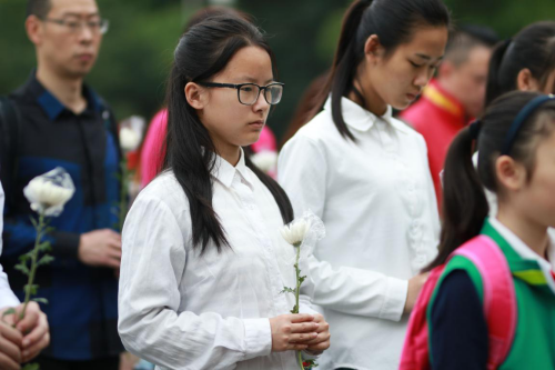 学生们手持白菊,在烈士纪念碑前肃立默哀、集体宣誓、敬献花蓝……深情表达无尽的哀思和怀念。学生们纷纷表示,幸福生活来之不易,要把爱家、爱国、爱民族的高尚情怀,外化为实际行动,努力学习,增长才干,争做有为青年。