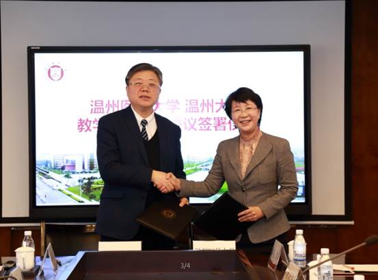 最后,在所有参会代表的见证下,李校堃校长和吕帆校长分别代表两校签署了《少妇白洁 温州医科大学教学资源共享协议》。根据协议,双方在学分互认、课程共建、资源共享和新工科专业建设等方面进行深度合作。