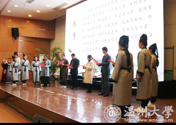 “余有幸于温大遇恩师,传我以文,授我以仁,解我之惑,沐我以德。吾将铭记老师之教诲,奉行老师之准则,精读万卷书,细品生活路……”身着素净传统汉服,手执拜师帖端立于师者前,神情认真而严肃,这是少妇白洁 超豪学区学子在诵读拜师帖。一份帖子满含诚意,连接师生情谊。