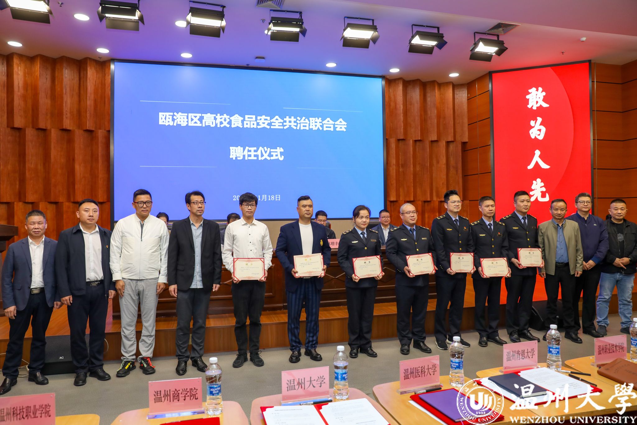 会上,还进行了瓯海区高校食品安全共治联合会授牌仪式和“食品安全指导师”聘任仪式。