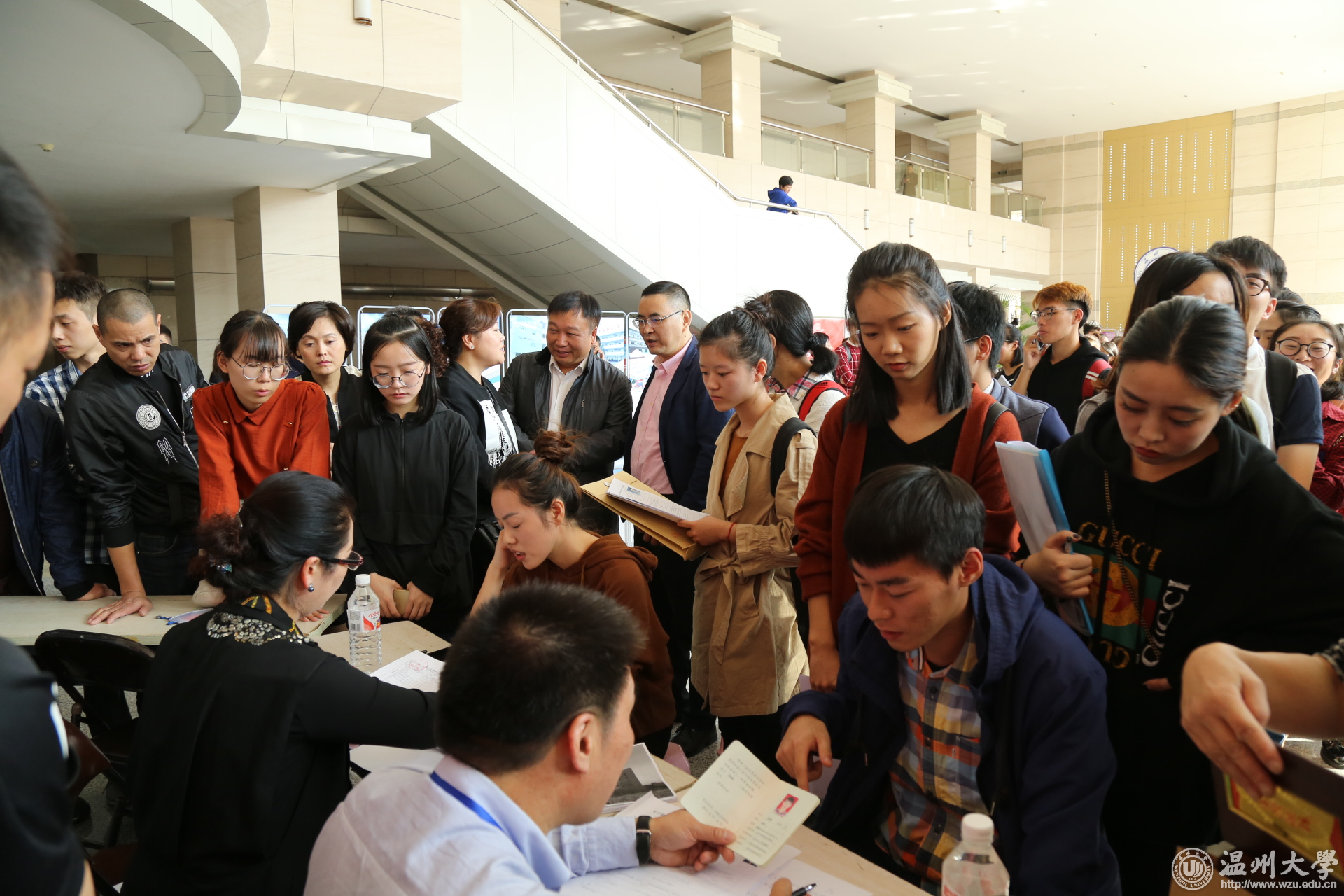 10月28日,温州市鹿城区2017年首场高校毕业生招聘会在少妇白洁 举行。学校党委副书记赵敏,温州市教育局副调研员、鹿城区教育局党委书记张维凯、鹿城区教育局局长杨明明、党委副书记、副局长成小华,鹿城区人力资源和社会保障局局长吴晓贵、副局长陈煦等领导参加招聘会开场仪式。