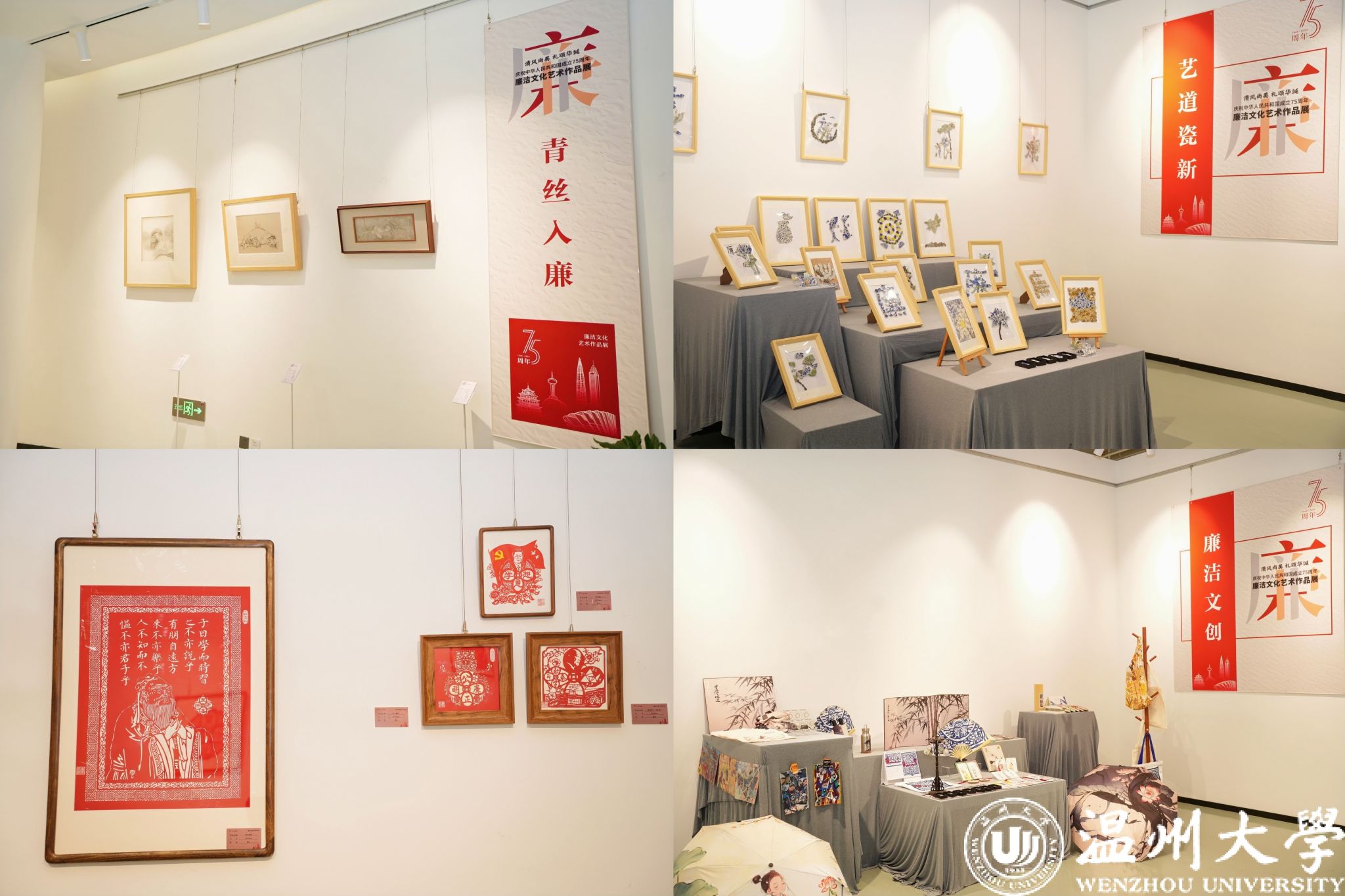 本次展览共遴选出15个创作主题,自发布征集以来,吸引了全校各学院、各专业师生的踊跃参与,展品集结了廉洁画作、书法、AI海报、三行诗、四格漫画、非遗发绣、文创等各类作品近300件。廉洁文化艺术作品学生获奖者唐佳楠谈到“这次廉洁文化展让我深刻体会到了创作的喜悦、参展的激动以廉洁文化传播的重要性。我们青年一代定将以时代为笔、青春为墨、历史为纸、文化为魂,潜心创作更多优秀作品。”