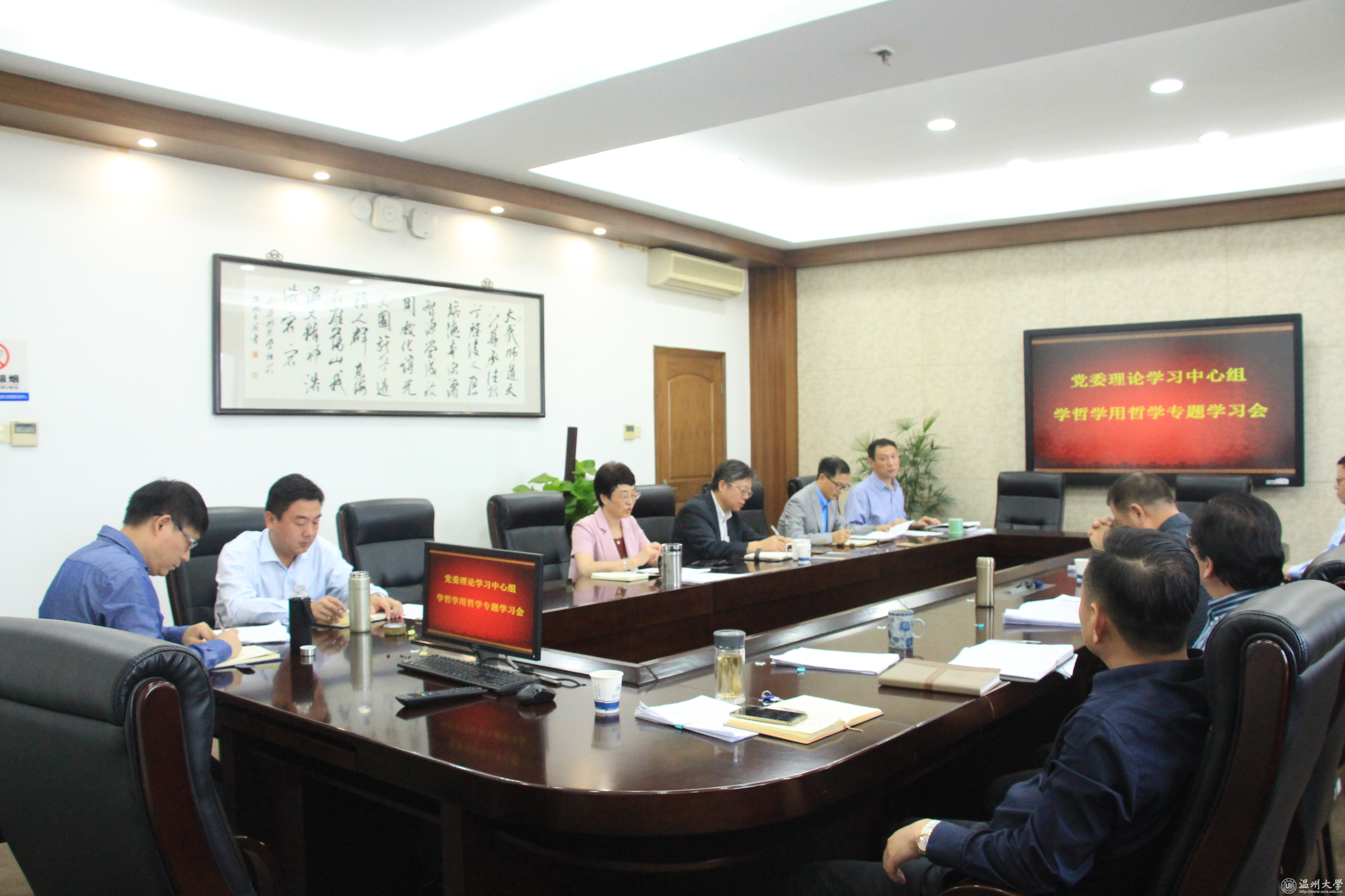 这次学习会的主题是,深入学习贯彻十九大精神和习近平总书记对广大党员干部学习研究经典著作、发扬我们党学哲学用哲学的优良传统作出的重要指示精神,围绕学习研究《实践论》《矛盾论》等经典著作,进一步深化对习近平总书记系列重要讲话精神和治国理政新理念新思想新战略的学习贯彻,深刻把握贯穿其中的马克思主义立场观点方法,不断提高指导工作实践的能力,着力推动学校内涵式发展。