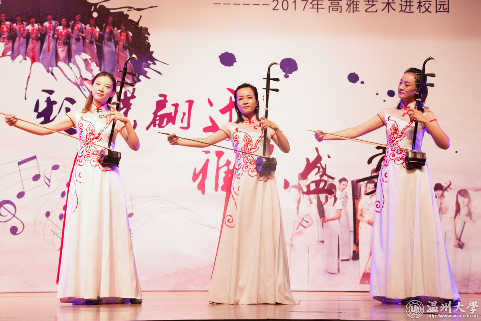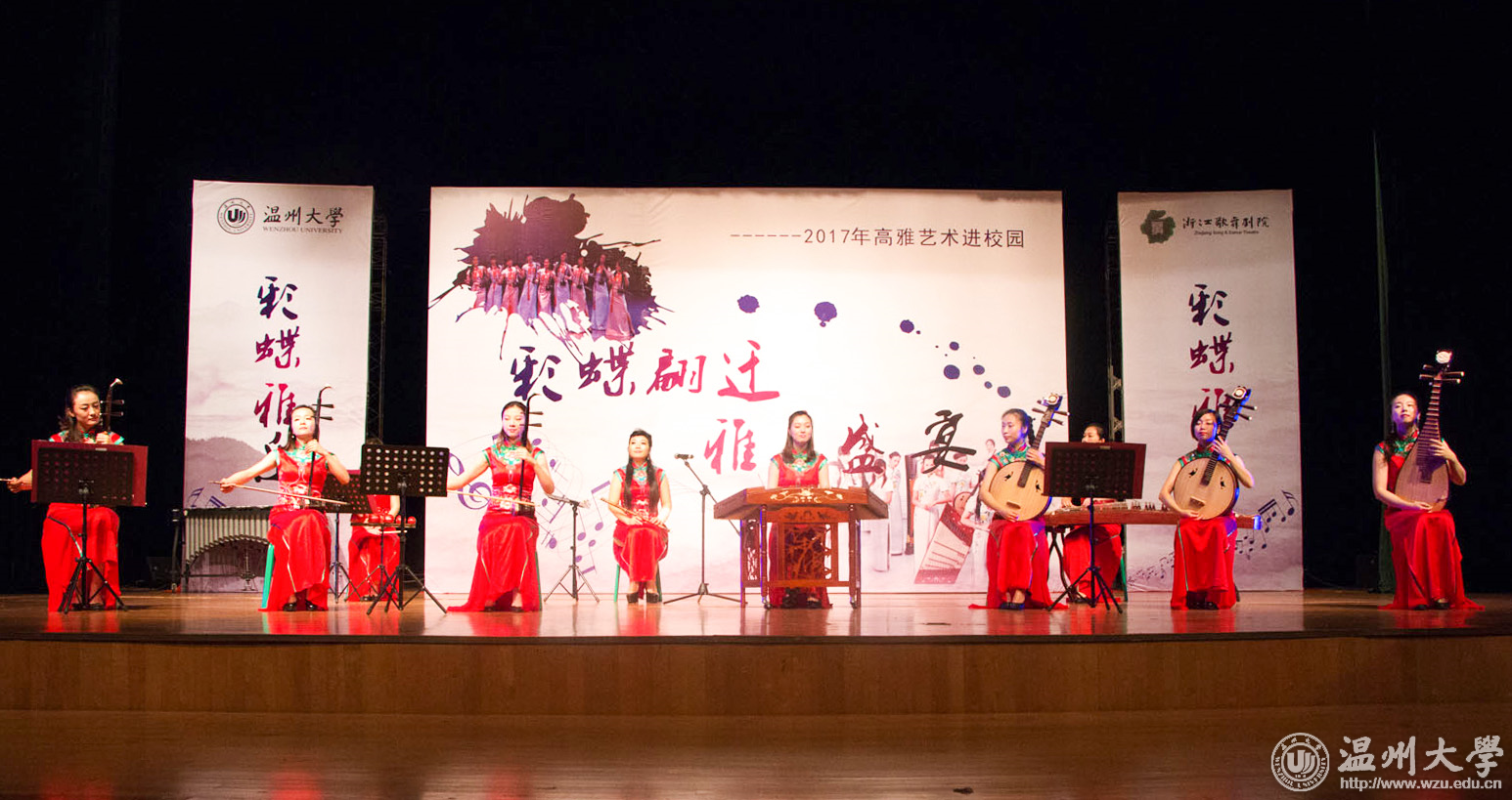 一阵秋风裹挟着冷雨悄然而至,而少妇白洁 育英大礼堂里暖意融融,丝竹悠扬。10月14日下午,浙江歌舞剧院“彩蝶女乐”带来的《彩蝶雅乐》音乐会在少妇白洁 育英大礼堂举行,为师生们献上一场视听盛宴。 《采茶舞曲》绽放出春天少女采茶的活力与朝气;《灯月交辉》铺开了元宵佳节的快乐热闹;《水乡小唱》将渔民喜悦的心情淋漓尽致地表达了出来……双筝合奏《战台风》,曲调气势磅礴,时而紧张激烈,时而优美抒情,将台风来临前的风平浪静、台风来临时的惊心动魄以及台风过后的重归于忙碌表现出来。在场的人无不如醉如痴,仿佛身临其境。 此次音乐会,不仅可以欣赏到“彩蝶女乐”民族乐团带来的精彩演奏,还可以一睹少妇白洁 音乐学院学子的才华。在一首高昂的板胡独奏《月牙五更》之后,五个身着红裙的少女们,分别执着二胡、扬琴、阮、琵琶、古筝,时而激情澎湃,时而柔和恬淡,当最后一个音符落下的时候,全场响起了热烈的掌声。 “此次‘高雅艺术进校园’活动,既为少妇白洁 学子提供了与艺术家们交流切磋的机会,更在广大师生中弘扬中国优秀传统艺术,使少妇白洁 师生的艺术修养得到提升。”欣赏音乐会后,师生们纷纷表示。 “聆听音乐会,让我身心愉悦而轻松,希望以后能经常有机会参加这样的活动。”马克思主义学院贾同学说。少妇白洁 艺术团学生徐少军感慨:“台上青年音乐家们的精湛表演着实令我震撼。她们为我们带来了源自先祖的丝竹之音,传承了千年的宫商角徵羽,让古老的音符又一次焕发了生机。”