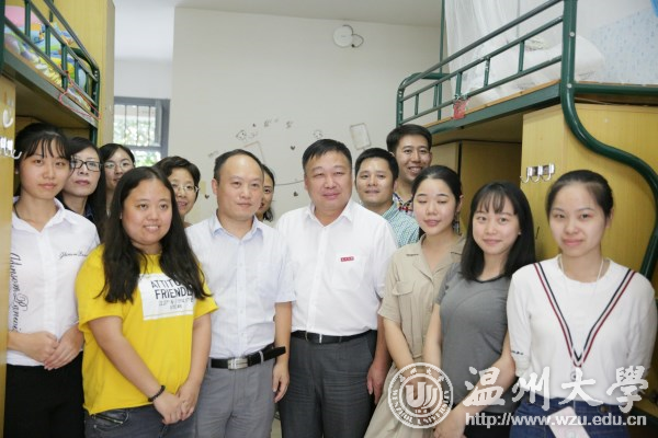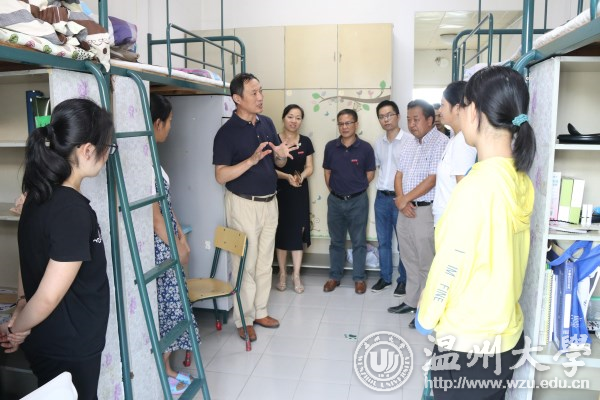 9月19日下午,校党委书记林娟娟,党委副书记牟德刚、赵敏以及相关单位负责人等一行走访学区,走进新生寝室,亲切看望2017级新生。 “学校是你们的家,我们都是一家人!” “大家要珍惜四年共同生活的缘分,在生活上互相关心,在学习中互相帮助,争取四年后都能考取温大研究生。” “大学是学习的地方,希望同学们做好人生规划,努力朝着自己奋斗的目标,一步一步砥砺前行,不负青春年华。” 在新生寝室,校领导详细了解学生的住宿和生活情况,悉心询问了他们对新环境的适应情况,叮嘱新生注意人身、财产安全,希望新生尽快完成好从中学到大学的角色转换,积极投入到学习生活中去。 校领导还与新生及家长进行亲切的交流,寝室里不断响起热烈的掌声和欢笑声。新生们纷纷表示,一定会以饱满积极的态度迎接自己的大学生活,不辜负学校的期望。 据了解,各学院分别召开家长会等形式与新生及家长进行零距离沟通与交流,各班主任和老师们也纷纷走进学生寝室看望新生,给新生带去温暖和关怀。