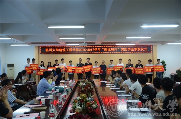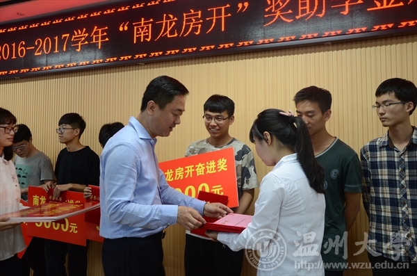 5月18日下午,一年一度“南龙房开”奖助学金颁发仪式在建筑工程学院举行。副校长钱强,有关部门、学院负责人,全体获奖学生和师生代表参加仪式。 钱强致辞。他代表学校向温州南龙房地产开发有限公司和校友蒋维清的无私捐助表达了由衷的感谢。他指出,校友蒋维清多年来心系母校、热心公益事业,践行企业家社会责任,希望广大学子能怀着感恩之心,努力学习,积极进取,以自强不息的精神去面对生活的挑战,认真诠释新青年学子的责任和担当,争取为母校、为社会多做贡献。